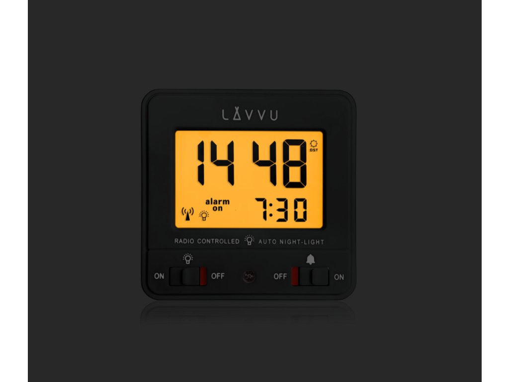 Praktický digitální budík LAVVU je automaticky řízen přesnýmrádiovým signálem z Německa. Navíc je vybaven světelným senzorem,