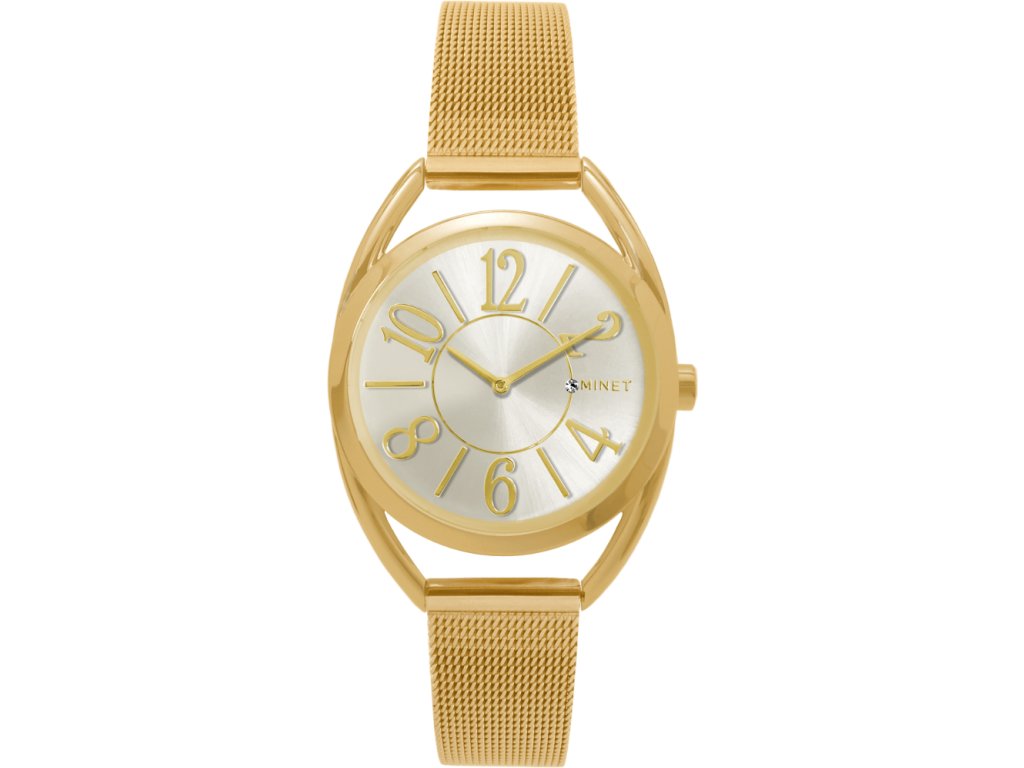 MINET Zlaté dámské hodinky s čísly ICON GOLD MESH