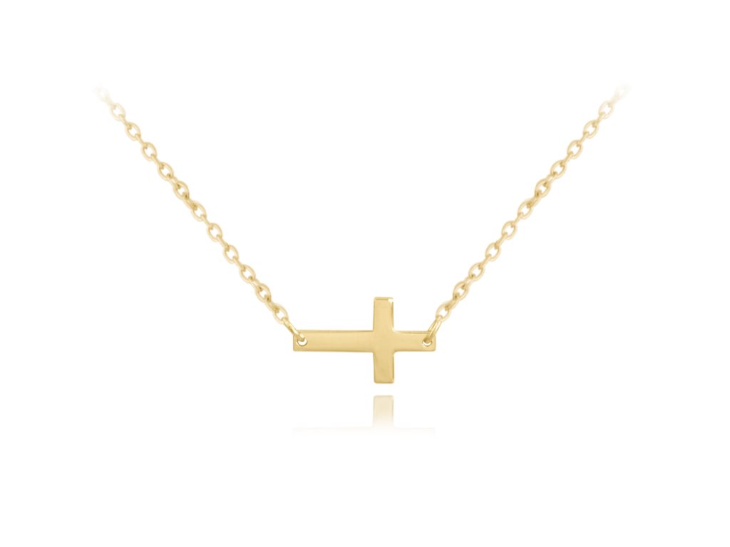 MINET Pozlacený stříbrný náhrdelník drobný ležatý KŘÍŽEK