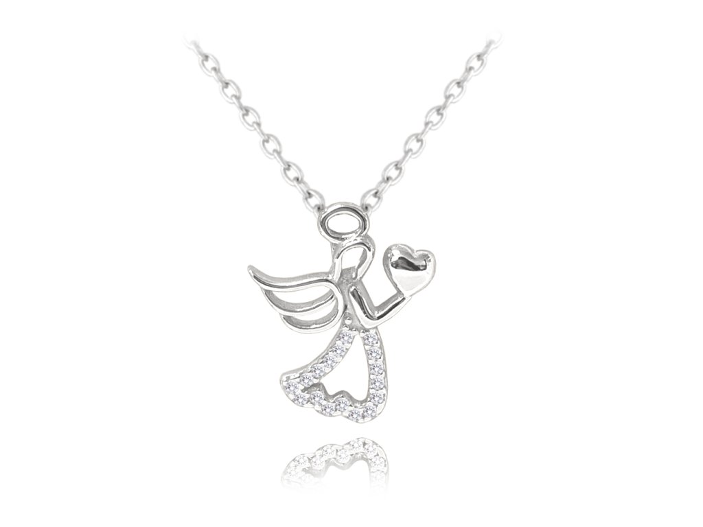 MINET Stříbrný náhrdelník ANDĚL se srdíčkem