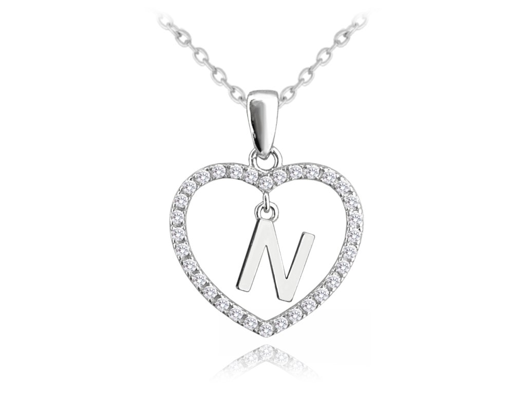 MINET Stříbrný náhrdelník písmeno v srdíčku "N" se zirkony