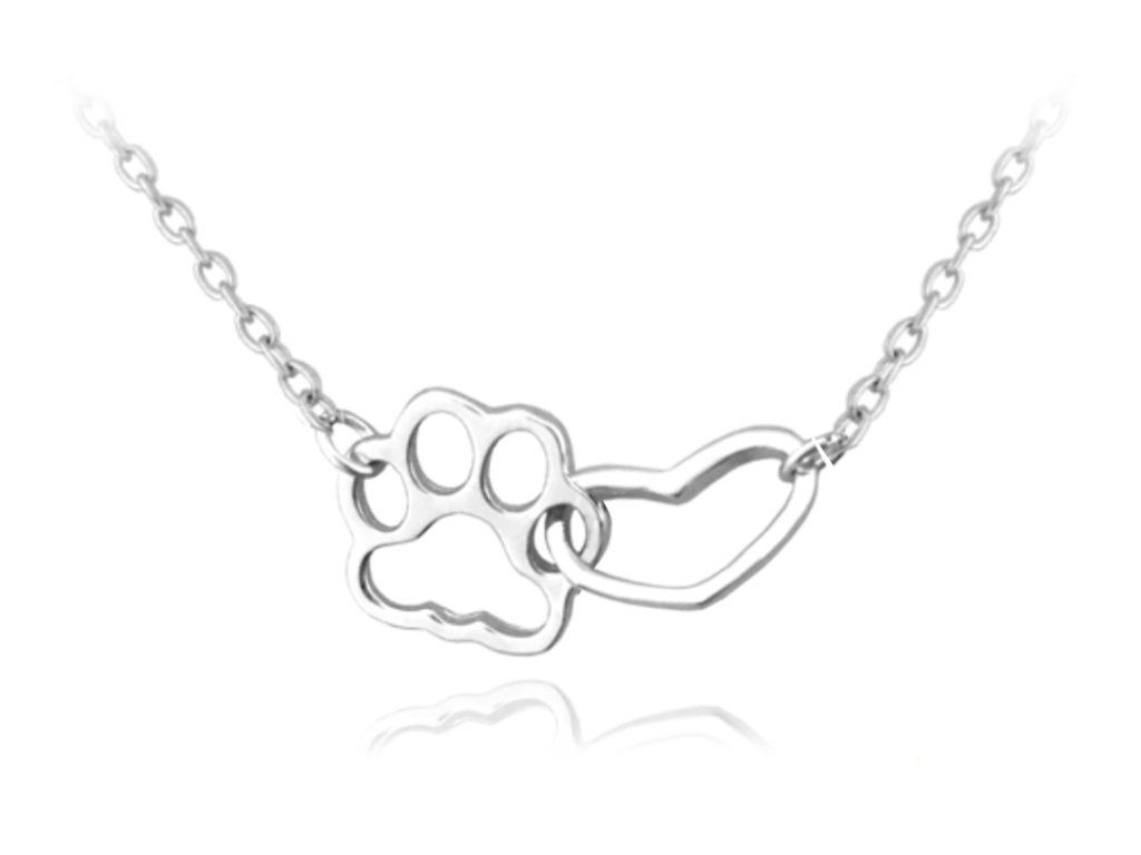 MINET Stříbrný náhrdelník TLAPKA se srdíčkem