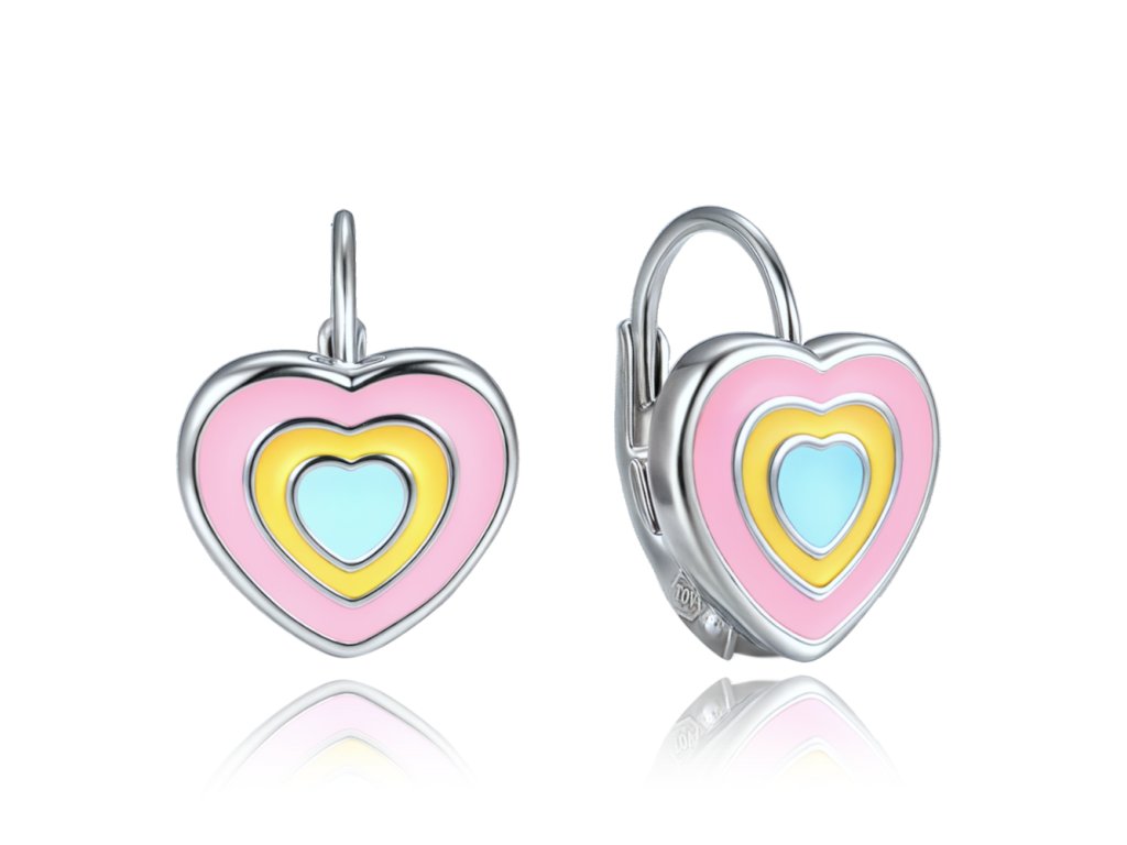 MINET Dětské stříbrné náušnice duhová srdíčka