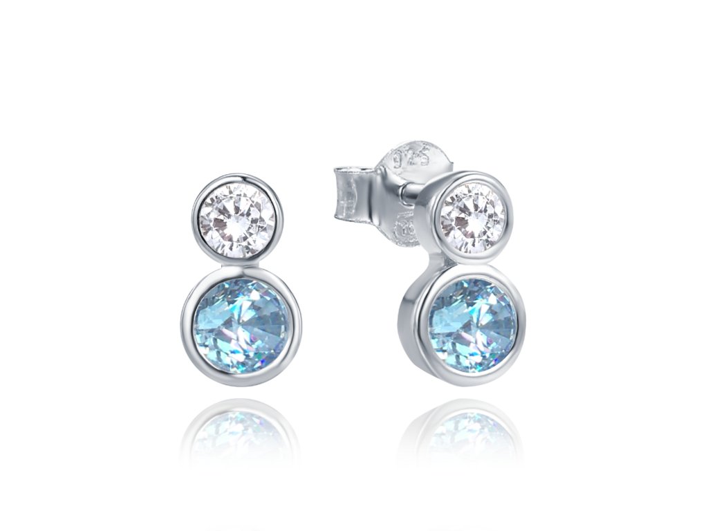 MINET Elegantní stříbrné náušnice s bílými a modrými zirkony