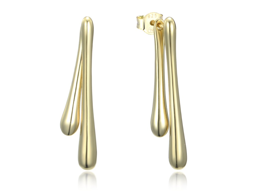 MINET Moderní pozlacené stříbrné náušnice visací kapky