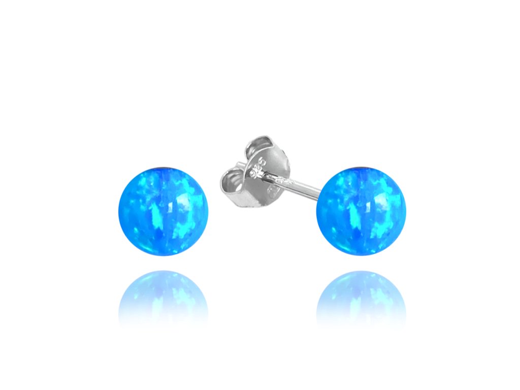 MINET Stříbrné náušnice KULIČKY se světle modrými opálky 6mm