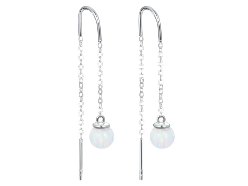 MINET Stříbrné náušnice visící kuličky s bílými opálky a zirkonem