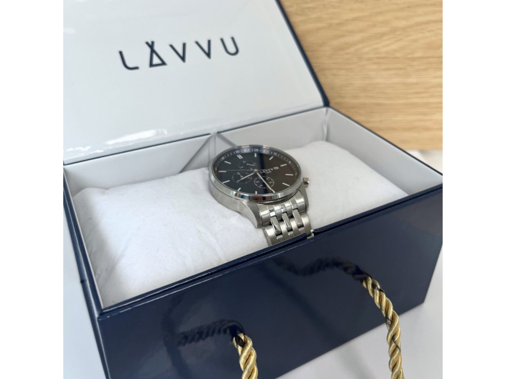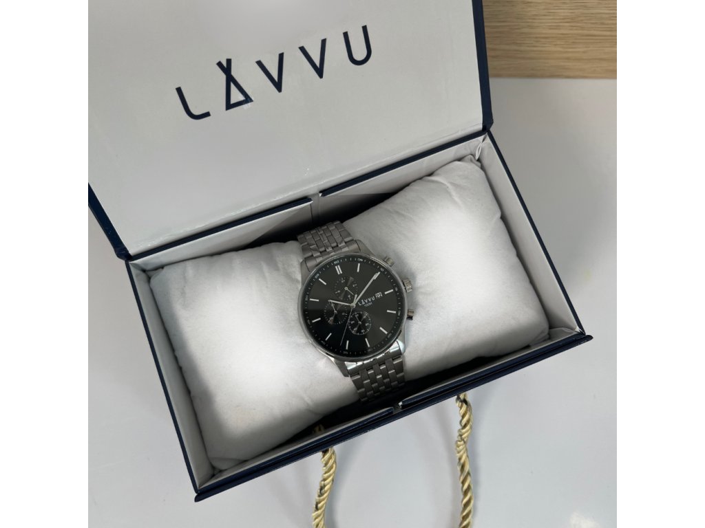 Odolné hodinky značky LAVVU s chronografem, vyrobené z hypoalergenní nerezové oceli. Nadstandardní vodotěsnost 100M, minerální tvrzené sklíčko, ukazatel data a stylový design z nich tvoří spolehlivý doplněk, který bude skvěle vypadat k formálnímu i volnočasovému oblečení. Vyměnitelný řemínek je možné zkrátit a přizpůsobit obvodu ruky.• kvalitní materiály